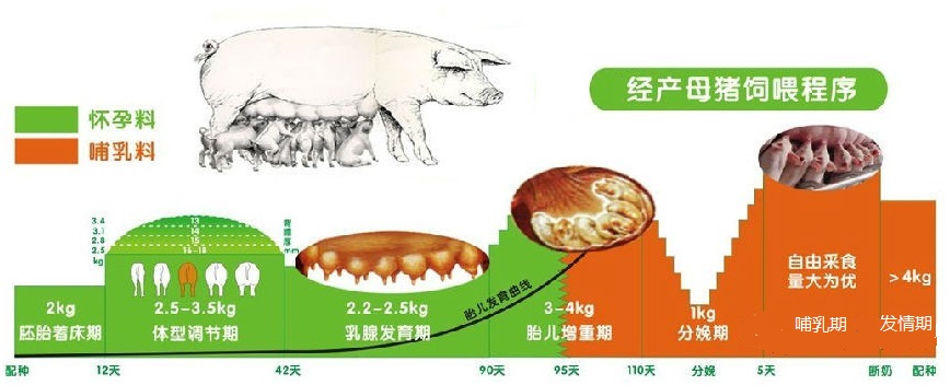 养母猪的成本80%发生在饲料消耗上,所以精准饲喂能直接降本增效:母猪不同阶段饲喂量的设定原则: