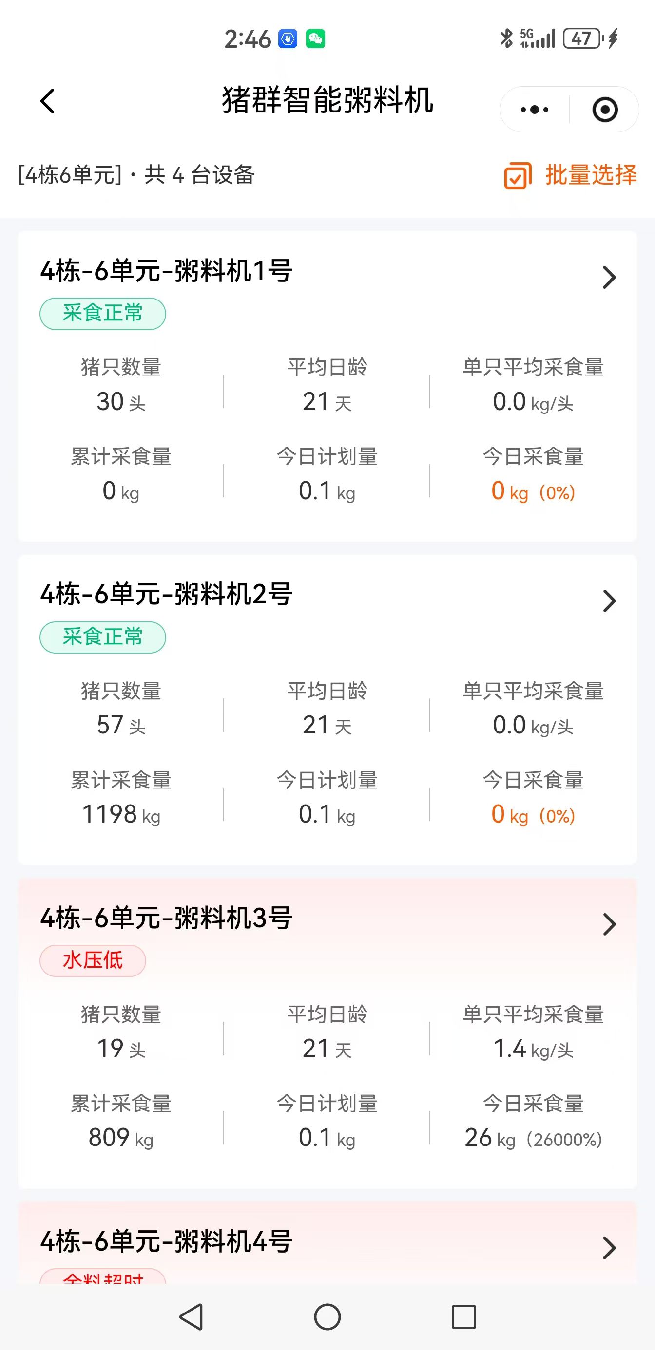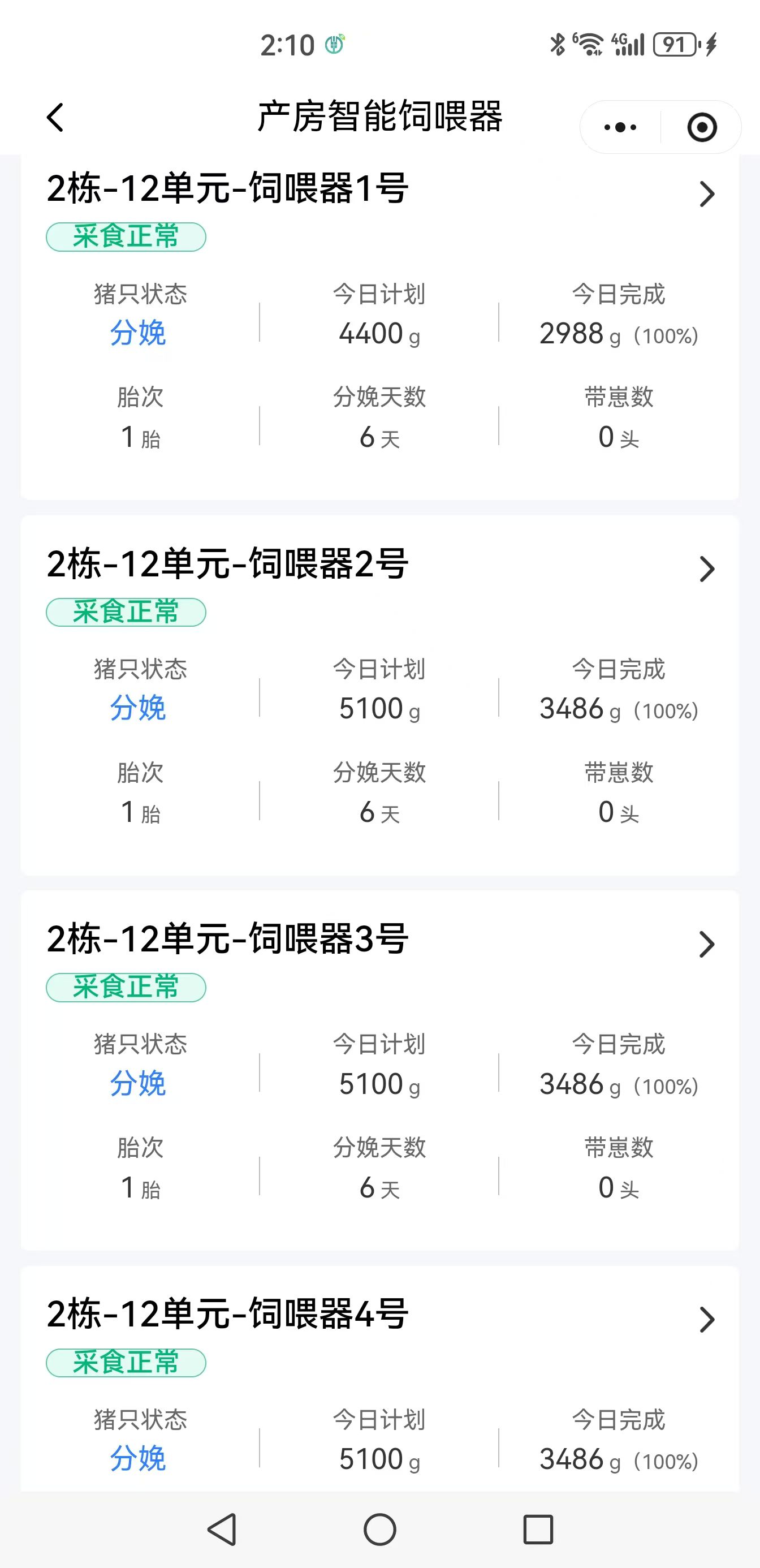 3,采食记录:在饲喂过程中设备自动收集猪每头母猪的实际采食记录,还可以收集到保育猪和育肥猪每套粥料机的采食记录备查备追溯。